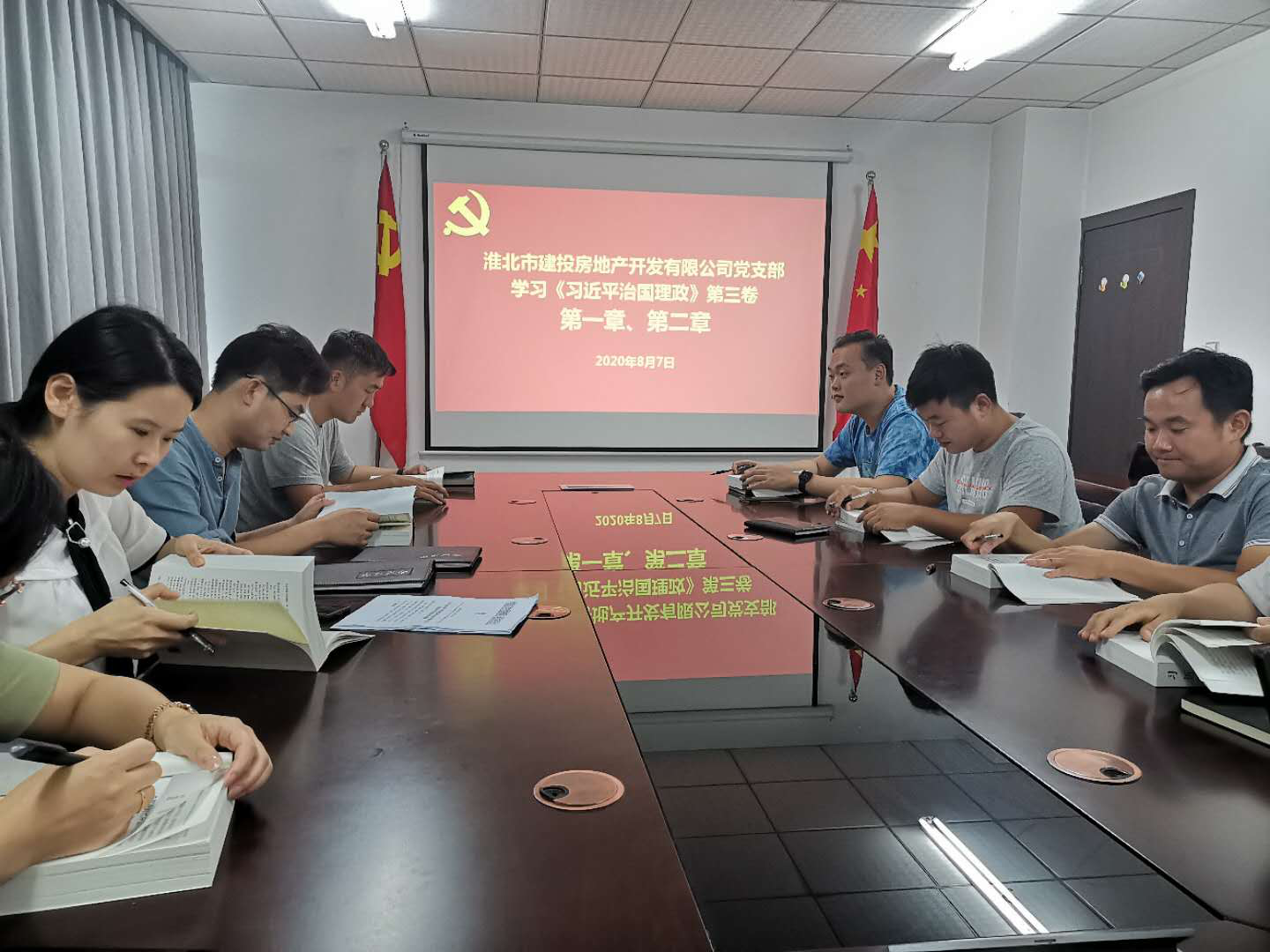 8月7日下午,房地產(chǎn)黨支部的黨員圍桌而作,在支委成員的領(lǐng)讀下,認(rèn)真學(xué)習(xí)領(lǐng)會《習(xí)近平談治國理政》第三卷的內(nèi)容。大家認(rèn)真學(xué)習(xí)、仔細(xì)記錄,讀原著、學(xué)原文、悟原理。