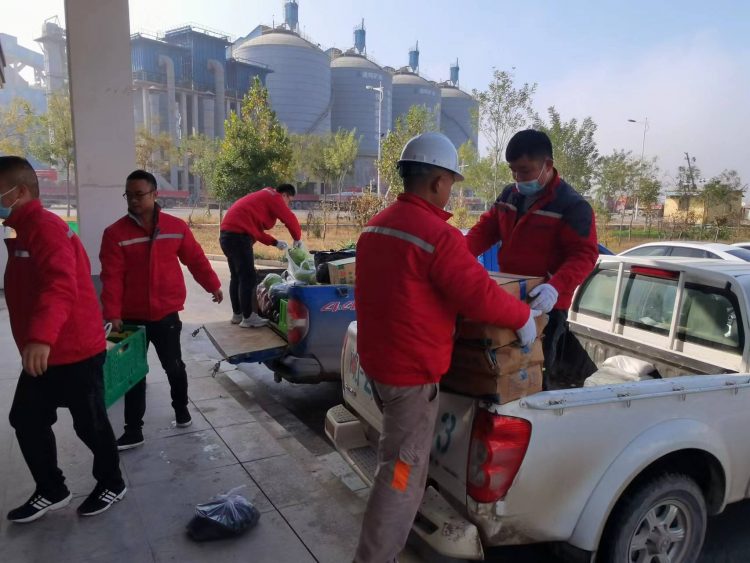 為保證通鳴礦業(yè)生產(chǎn)正常運行,確保員工的日常生活需求,疫情期間,在食堂供應(yīng)商——濉溪縣中瑞生鮮配送公司無法將生活物資配送到指定地點的情況下,11月15日上午,通鳴支部迅速響應(yīng),統(tǒng)籌協(xié)調(diào),提前安排,以安全保供和疫情防控為抓手,以企業(yè)擔當精神為動力,積極組織綜合部、經(jīng)管部、生產(chǎn)部、工程部共計10名黨員及生產(chǎn)技術(shù)骨干迅速成立“黨員突擊隊”,同時調(diào)配兩輛皮卡車參與生活物資運輸。