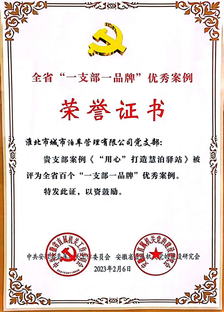 日前,中共安徽省直屬機(jī)關(guān)工作委員會(huì)、安徽省直屬機(jī)關(guān)黨的建設(shè)研究會(huì)聯(lián)合發(fā)文表彰了全省百個(gè)“一支部一品牌”黨建工作典型案例,此次“一支部一品牌”黨建工作典型案例評(píng)選全省共有400家單位586個(gè)優(yōu)秀案例參加初評(píng)和復(fù)審,最終綜合評(píng)定100個(gè)“一支部一品牌”優(yōu)秀案例?;幢背鞘胁窜嚬芾碛邢薰?/span>黨支部獲得通報(bào)表彰,支部的黨建品牌《“用心”打造慧泊驛站》獲評(píng)全省百個(gè)“一支部一品牌”優(yōu)秀案例。
