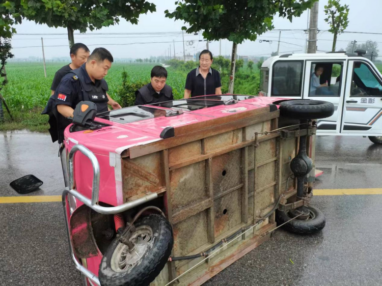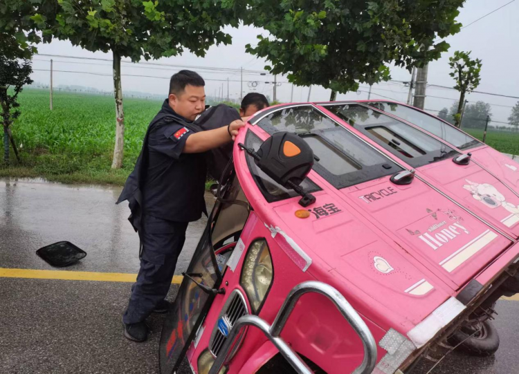 車輛雨中側(cè)翻,押運(yùn)暖心相助