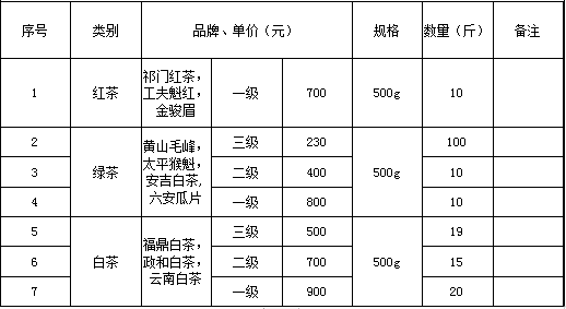 | 招標(biāo)項(xiàng)目名稱 | 淮北市建投控股集團(tuán)有限公司2021年度茶葉采購(gòu)項(xiàng)目 | |||