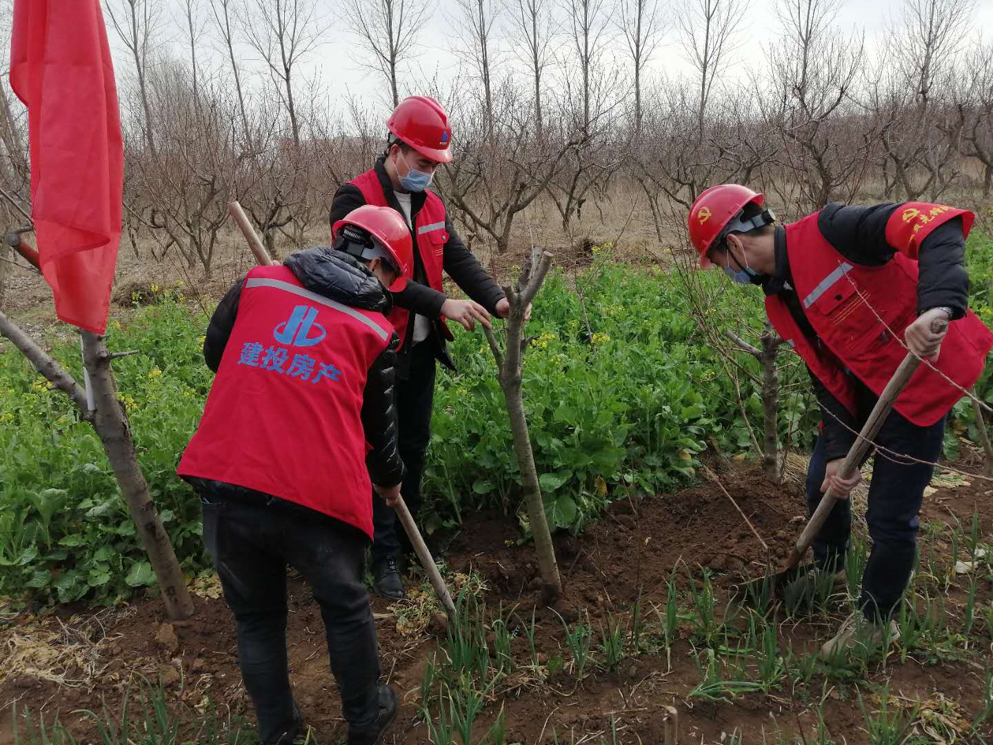 植樹添綠,青年行動。連日來,房地產(chǎn)公司早謀劃、早宣傳、早行動,以在建項目為單位,積極組織青年員工開展“義務植樹”活動。活動中,各項目部以小型、分散的方式,大家或兩人結(jié)對或三五人一組,扶苗、填土、培實、澆水,分工明確,相互配合,干勁十足。一鏟鏟泥土的填充,一滴滴汗水的流下,一棵棵樹苗的載種,公司廣大青年用實際行動傳播綠色希望。