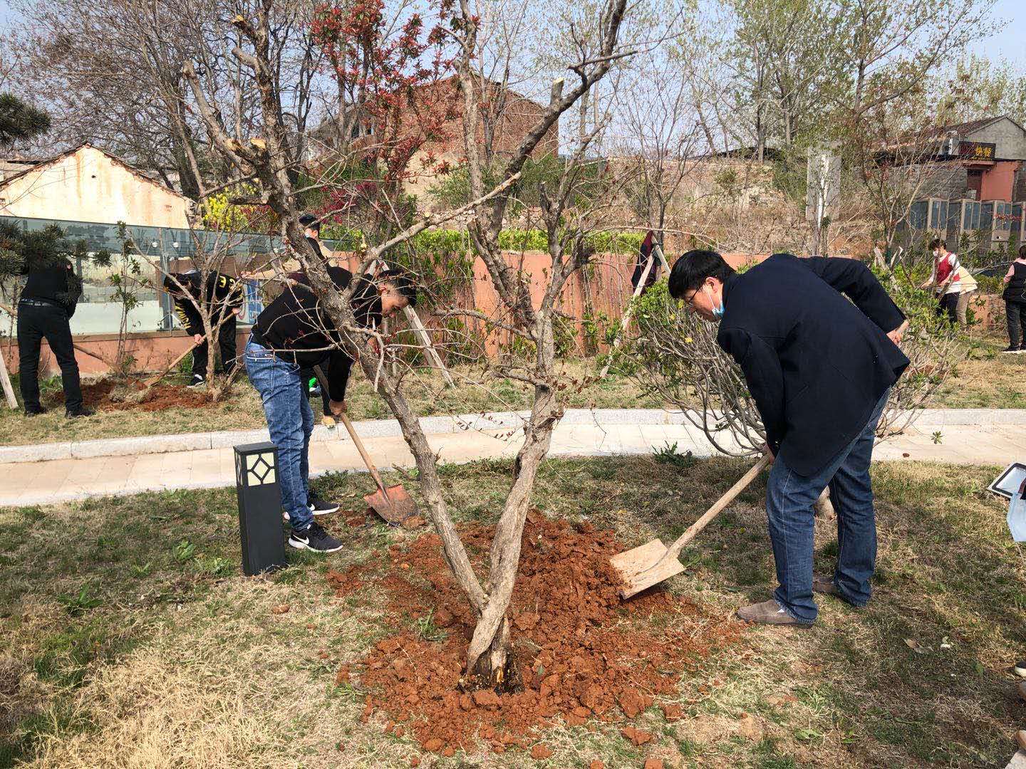 支部副書記張爭光對(duì)本次活動(dòng)作出了分工安排,黨員同志身先士卒,員工們情緒高昂,大家互相配合,有的揮鍬鏟土 、有的扶樹填土、有的培土澆水,每個(gè)都忙的不亦樂乎。