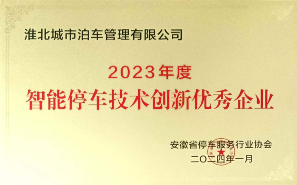 2024年1月,淮北城市泊車管理有限公司被安徽省停車服務(wù)行業(yè)協(xié)會(huì)授予2023年度“智能停車技術(shù)創(chuàng)新優(yōu)秀企業(yè)”、“停車運(yùn)營(yíng)管理優(yōu)秀企業(yè)”的殊榮。