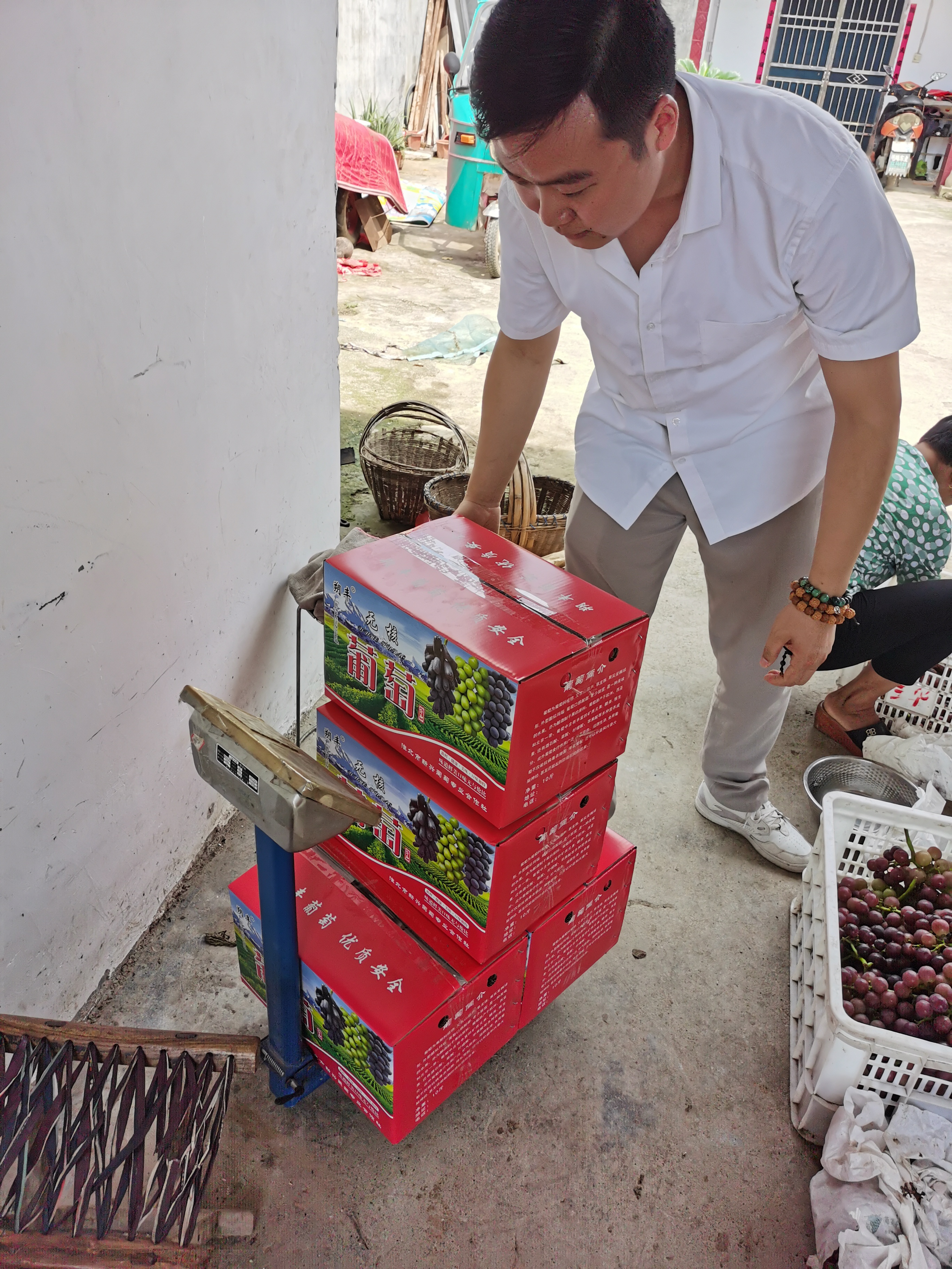 在了解到幫扶戶家中種植的葡萄產(chǎn)量在雨水影響下,減產(chǎn)損失較重,直接經(jīng)濟損失大約2萬元,支部副書記趙瑩瑩現(xiàn)場自費購買70多斤,并聯(lián)系幾家水果采購商洽談銷售問題。