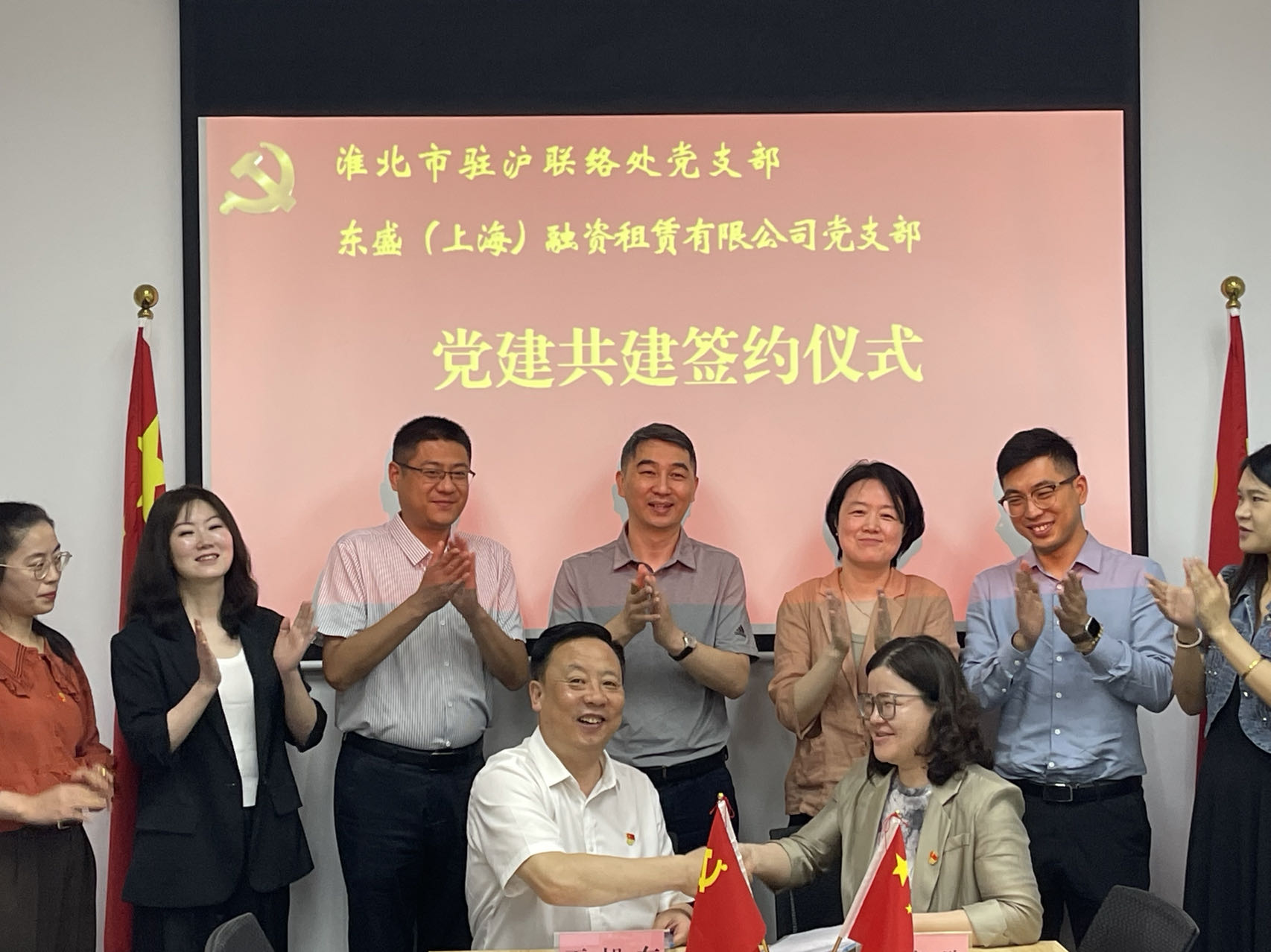 座談會上,首先市政府駐上海聯(lián)絡(luò)處綜合科科長王旭東、東盛(上海)融資租賃有限公司總經(jīng)理何曉璐分別介紹雙方黨建及業(yè)務(wù)開展情況,市政府駐上海聯(lián)絡(luò)處招商科科長羅冠鑫、東盛(上海)融資租賃有限公司副總經(jīng)理雷震雨分別談了參觀淞滬抗戰(zhàn)紀(jì)念館感受。其次市政府駐上海聯(lián)絡(luò)處主任王楊強調(diào)了黨建引領(lǐng)業(yè)務(wù)發(fā)展的重要性、必要性。再次省政府駐上海辦事處處長趙輝就雙方如何開展黨建聯(lián)建、實現(xiàn)黨建與業(yè)務(wù)深度融合進行了精準(zhǔn)指導(dǎo)。最后在熱烈的掌聲中,雙方正式簽署了黨建共建協(xié)議。