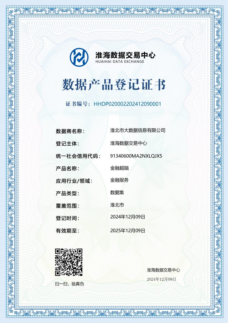 淮海數(shù)據(jù)交易中心作為淮海經(jīng)濟(jì)區(qū)數(shù)據(jù)交易的關(guān)鍵樞紐與創(chuàng)新高地,在數(shù)據(jù)交易規(guī)則制定、數(shù)據(jù)產(chǎn)品創(chuàng)新孵化、數(shù)據(jù)安全保障機(jī)制以及數(shù)據(jù)要素市場培育等多方面均積累了豐富且前沿的經(jīng)驗(yàn)與實(shí)踐成果?;幢笔写髷?shù)據(jù)信息有限公司積極和淮海數(shù)據(jù)交易中心對(duì)接,深入學(xué)習(xí)與交流,探索數(shù)據(jù)領(lǐng)域發(fā)展新路徑與新機(jī)遇,拓展數(shù)據(jù)要素流通市場,分析探討數(shù)商合作生態(tài),近日該公司數(shù)據(jù)助貸產(chǎn)品“金融超腦”通過淮海數(shù)據(jù)交易中心的認(rèn)證,獲得數(shù)據(jù)產(chǎn)品登記以及數(shù)據(jù)商資格。