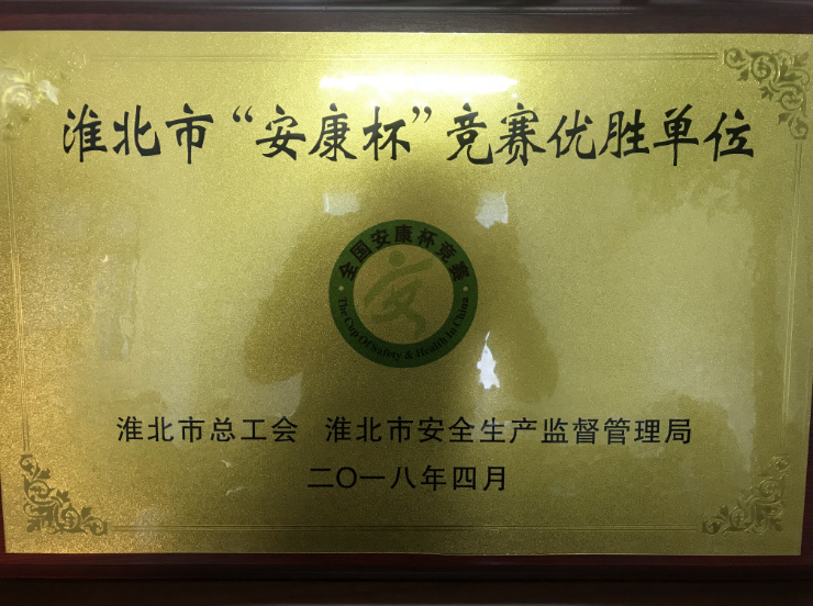 2017年,市總工會、市安全生產監(jiān)督管理局在全市開展了以“安全培訓提素質、班組管理強基礎”為主題的“安康杯”競賽活動。淮北市建投控股集團有限公司為保障企業(yè)的安全生產及職工的安全健康,充分調動廣大職工參與群眾性安全生產活動的積極性、主動性和創(chuàng)造性,認真貫徹落實黨的十九大精神,在集團公司范圍內開展2017年度“安康杯”競賽活動,在安全生產工作中取得了優(yōu)異成績,被淮北市總工會和淮北市安全生產監(jiān)督管理局評為淮北市“安康杯”競賽優(yōu)勝單位。