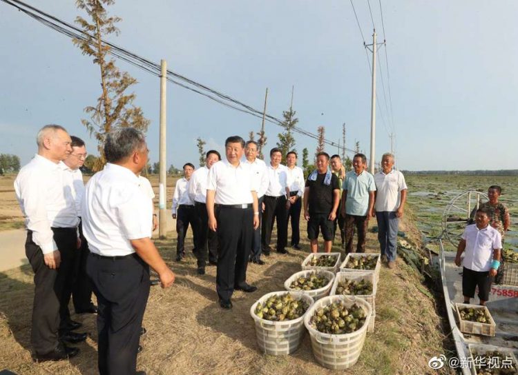 習(xí)近平總書記18日赴安徽考察調(diào)研。當(dāng)天下午,他先后來到阜陽市阜南縣王家壩閘、紅亮箱包有限公司、蒙洼蓄洪區(qū)曹集鎮(zhèn)利民村西田坡莊臺,察看淮河水情,走進(jìn)田間地頭,了解當(dāng)?shù)胤姥淳葹?zāi)和災(zāi)后恢復(fù)生產(chǎn)等情況,看望慰問受災(zāi)群眾。(文字記者:張曉松 攝影記者:鞠鵬 王曄)