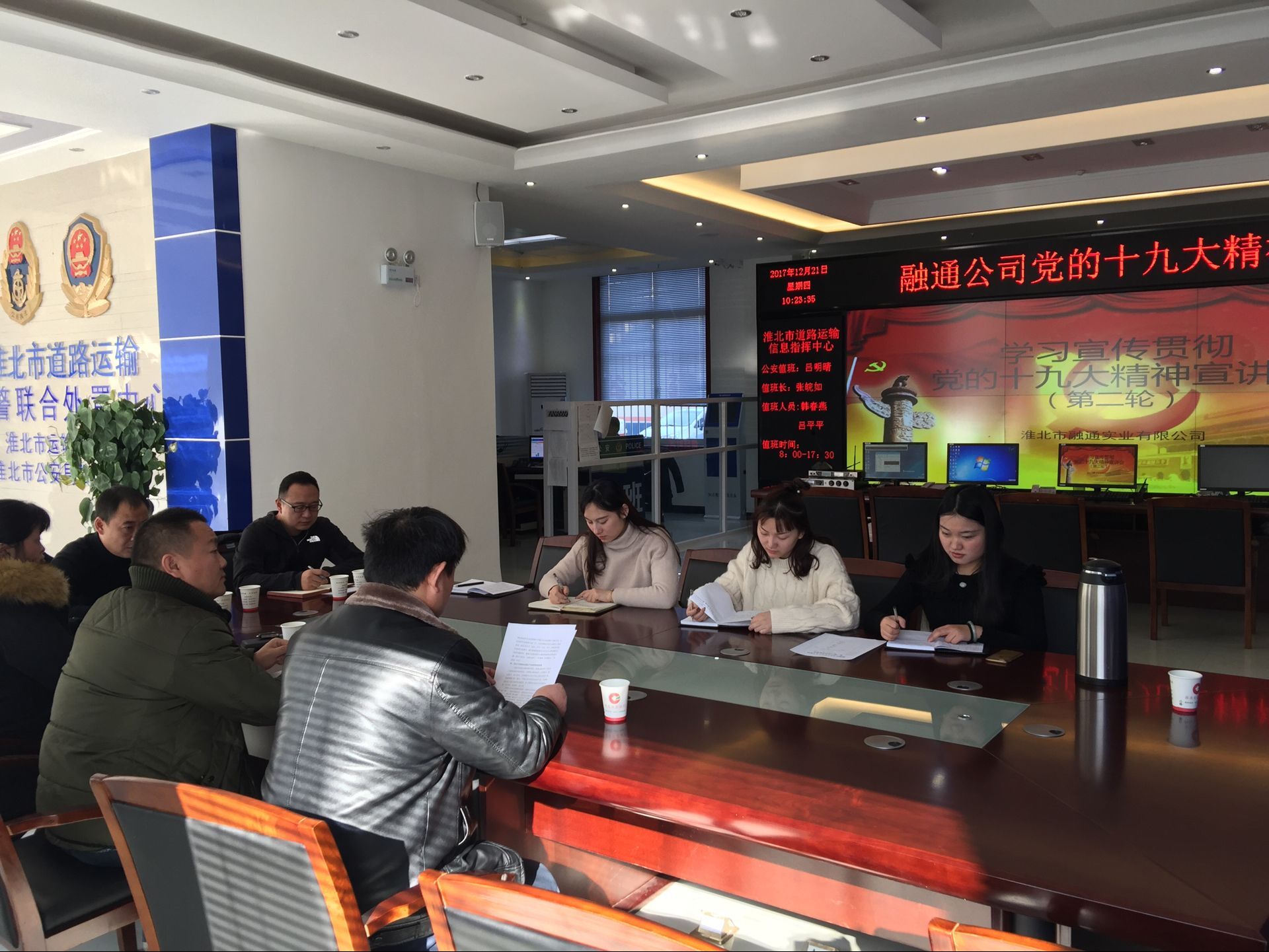 按照集團(tuán)統(tǒng)一部署要求,12月21日融通公司全體員工在市道路運(yùn)輸信息指揮中心一樓大廳進(jìn)行第二輪學(xué)習(xí)傳達(dá)黨的十九大精神。