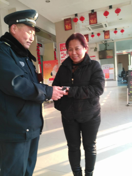 2018年2月7日下午4點,淮北市保安有限公司保安隊員方成亮在工行杜集支行營業(yè)大廳值班巡視過程中,發(fā)現(xiàn)一部手機遺留在營業(yè)室,方成亮發(fā)現(xiàn)情況后,主動將手機保管,并逐個詢問前來辦業(yè)務(wù)的客戶,均無人認領(lǐng)。40分鐘后,失主打此電話,經(jīng)見面全面核實確認后,將手機歸還失主,失主十分感謝!