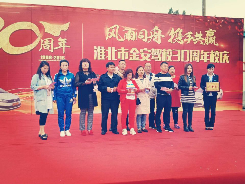 整個(gè)慶典彩旗招展、百花爭艷,歡聲笑語,工作人員與參加慶典的社會群眾共聚一堂,共同慶祝金安駕校30周年。首先,由淮北市交投公司副總經(jīng)理張曉兵同志宣讀賀詞,對我校30周年的發(fā)展歷程當(dāng)中的工作與貢獻(xiàn)作出了肯定,其次是金安駕校負(fù)責(zé)人陶夢秋同志致詞,對金安駕校全體員工的辛勤付出表示感謝。隨后是金安駕校全體員工精心編排的文藝演出,節(jié)目精彩紛呈,高潮迭起,最后四輪抽獎活動更是把現(xiàn)場的氣氛推向了高潮,整場慶典在火熱報(bào)名中圓滿結(jié)束。