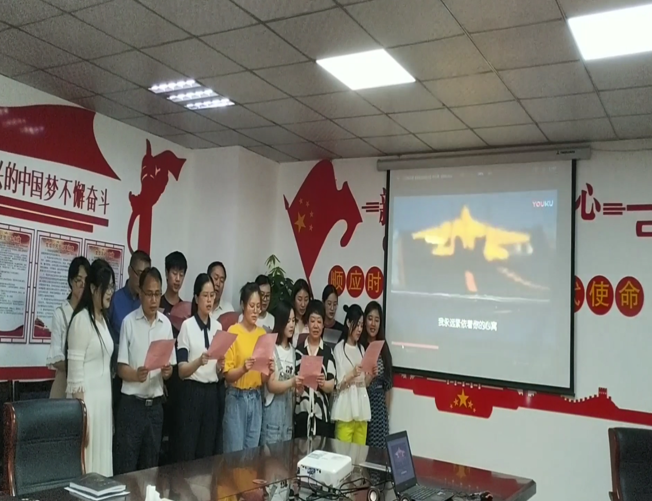 學(xué)習(xí)結(jié)束后,全體成員共同觀賞了歌曲《我和我的祖國》,并經(jīng)過多次認(rèn)真排練后,以全體大合唱的形式傾情歌唱了《我和我的祖國》,以此表達(dá)對祖國的無限熱愛和誠摯祝福。