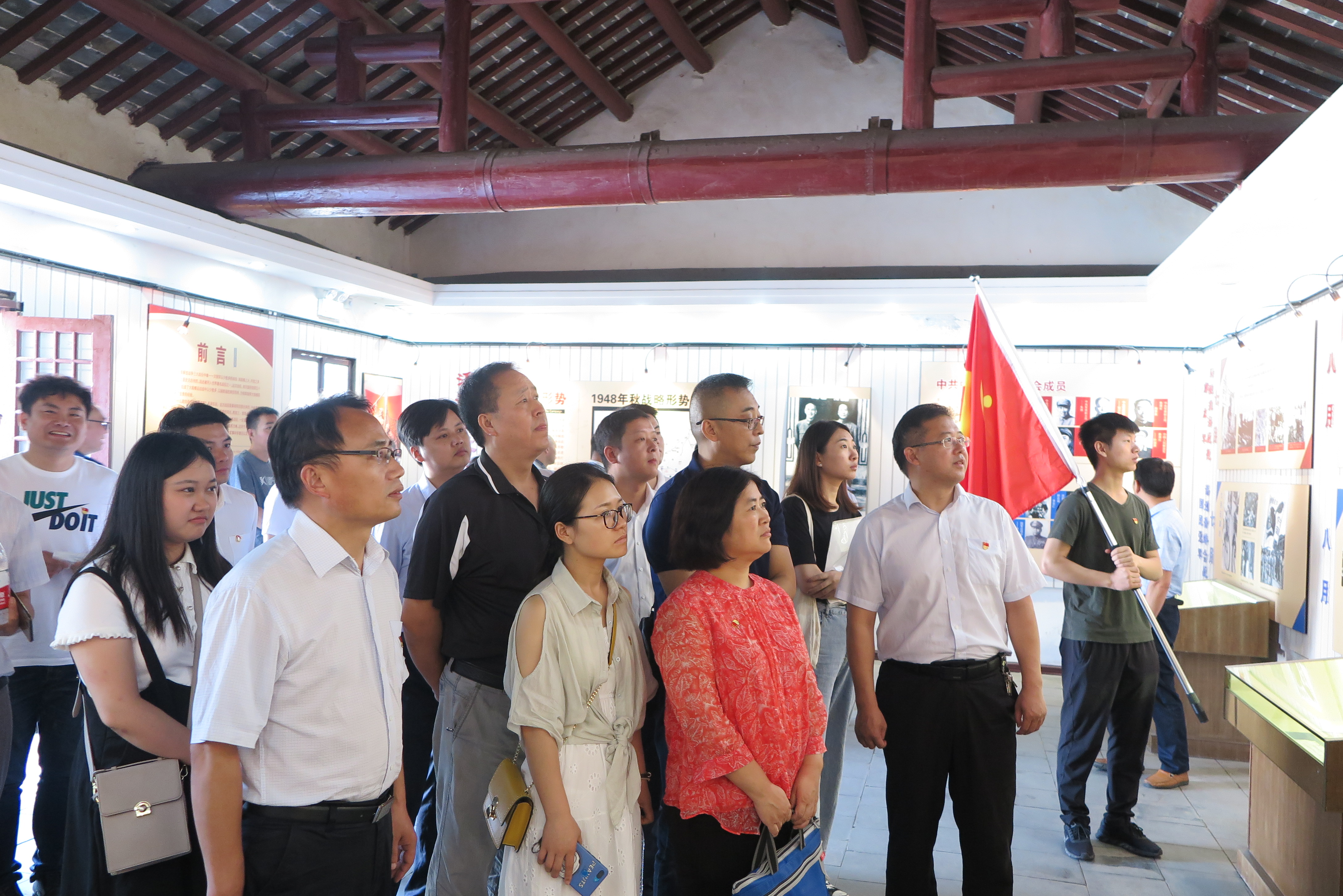 四個(gè)黨支部共計(jì)28名黨員同志赴臨渙文昌宮,參觀中共淮海戰(zhàn)役總前委舊址,走近在文昌宮回顧淮海戰(zhàn)役的革命歷程,緬懷老一輩無產(chǎn)階級革命家的豐功偉績,教育和引導(dǎo)黨員們進(jìn)一步增強(qiáng)“四個(gè)意識”,堅(jiān)定“四個(gè)自信”,做到“兩個(gè)維護(hù)”。隨后,全體黨員同志到小李莊淮海戰(zhàn)役總前委指揮部舊址和小李家紅色博物館進(jìn)行參觀學(xué)習(xí)。在紅色主題文化廣場進(jìn)行宣誓,再一次重溫入黨誓詞,回顧入黨初心,牢記黨員使命。