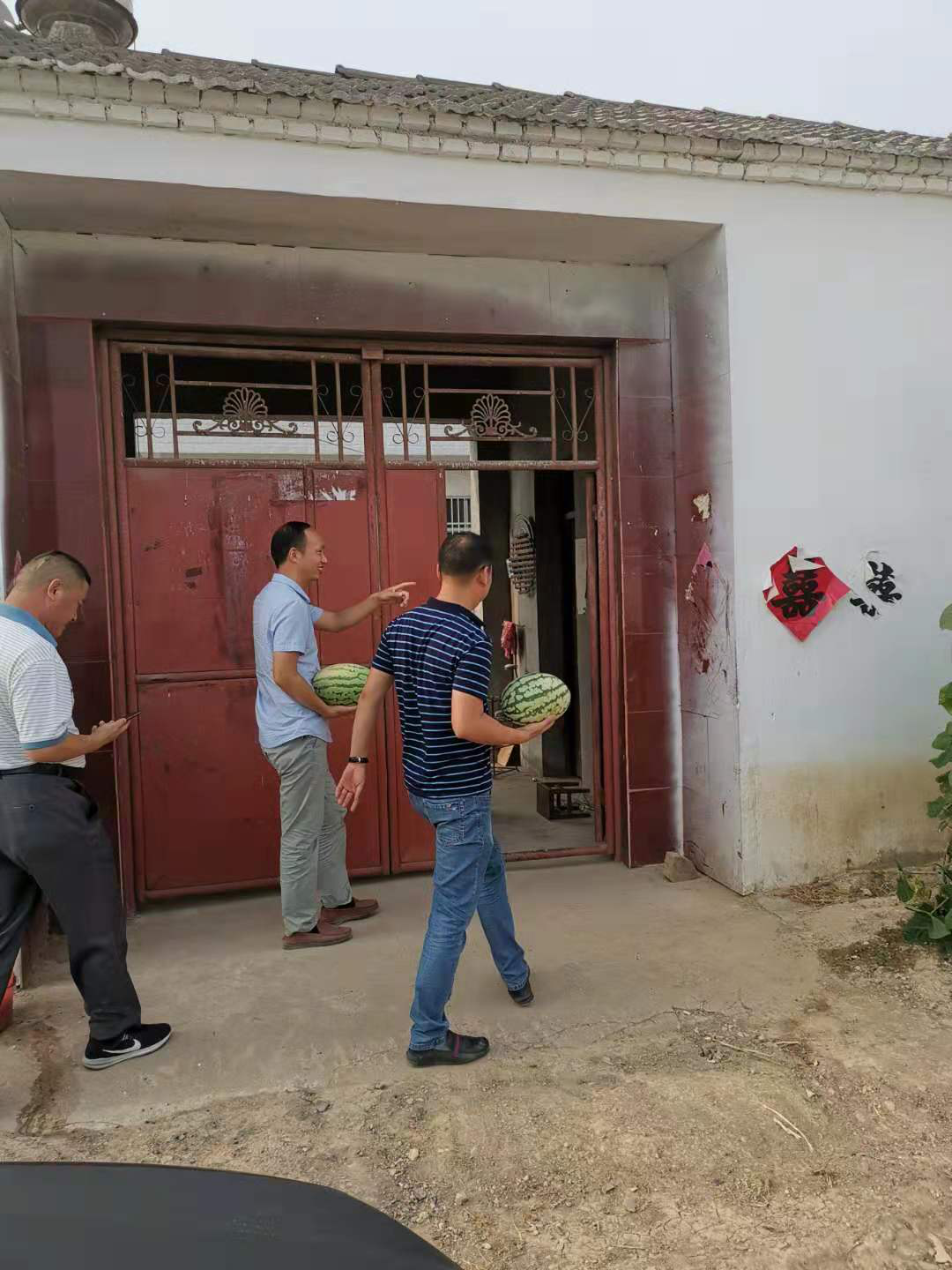 7月23日下午,交投石化公司扶貧小組成員在公司副總經理唐松帶領下,冒著酷暑高溫,前去扶貧對象趙書華家慰問。