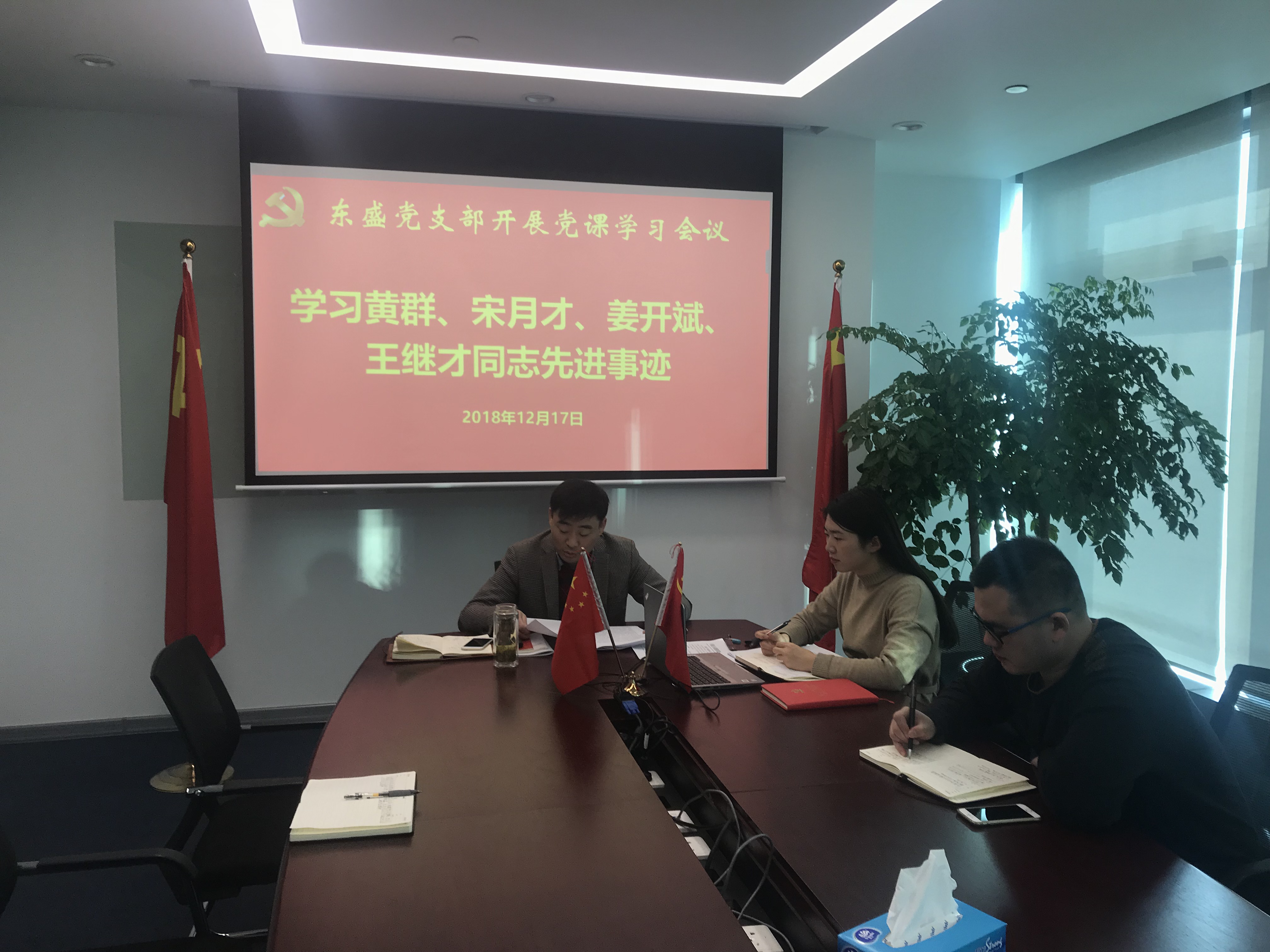 2018年12月17日上午,在王智同志的組織下,東盛黨支部通過開展黨課學習形式,認真宣傳學習了黃群、宋月才、姜開斌、王繼才同志的先進事跡和崇高精神,通過對他們先進事跡的學習,我支部全體黨員及員工無不深受感動,衷心佩服。
