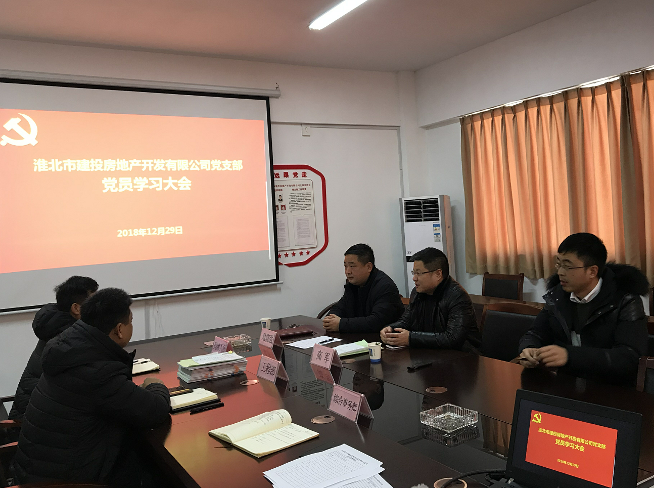 2018年12月29日下午,房地產(chǎn)公司召開支部學(xué)習(xí)會,學(xué)習(xí)傳達(dá)全國全省國有企業(yè)黨的建設(shè)工作會議精神。